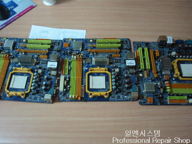T-Force 6100AM2 메인보드수리 결과입니다. 9일 오후에 부팅불증상으로 메인보드3장 PC방에서 입고 되었습니다.