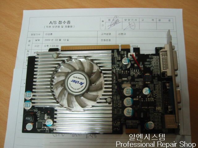 7600GT 그래픽카드수리 결과입니다. 13일 화면즐점검결과 화면줄가는증상으로 입고되었습니다.