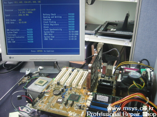 경기도 화성입고된 메인보드 화면불증상 수리완료후 테스트장면